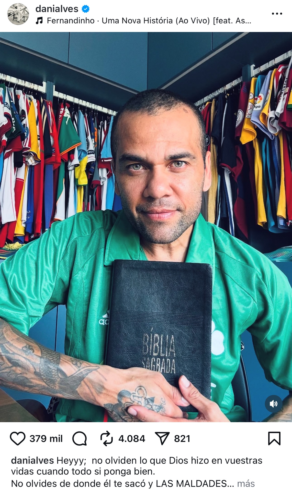 📖 En medio de la noticia, Alves sorprendió en redes compartiendo versículos bíblicos, mostrando lo que parece ser un cambio personal tras meses de polémicas y preocupación. “Quien confía en Dios ya no pierde la batalla”, escribió su madre, sumándose a las expresiones de fe de la familia.