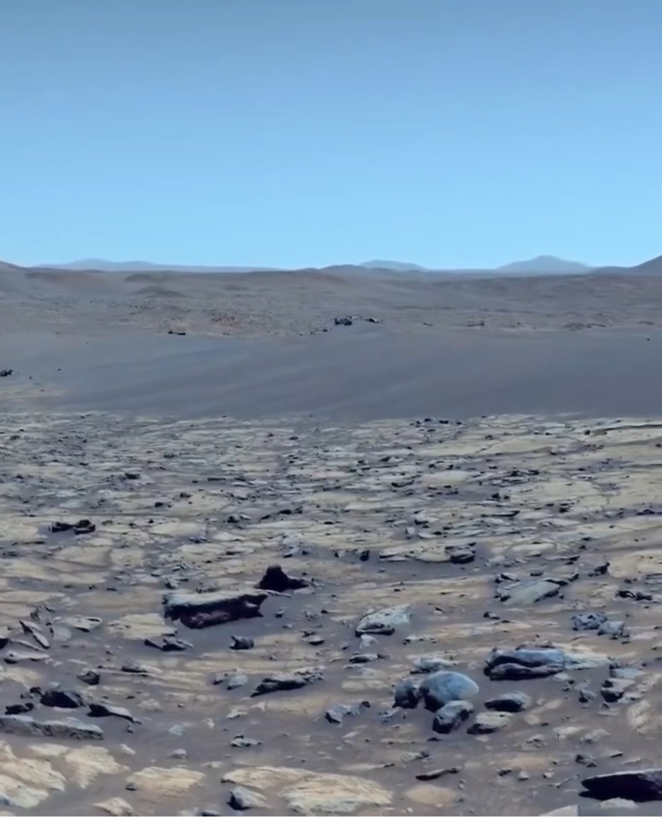 Aunque el planeta rojo es famoso por sus cielos rojizos, esta imagen nos muestra una versión poco común: un cielo azul.